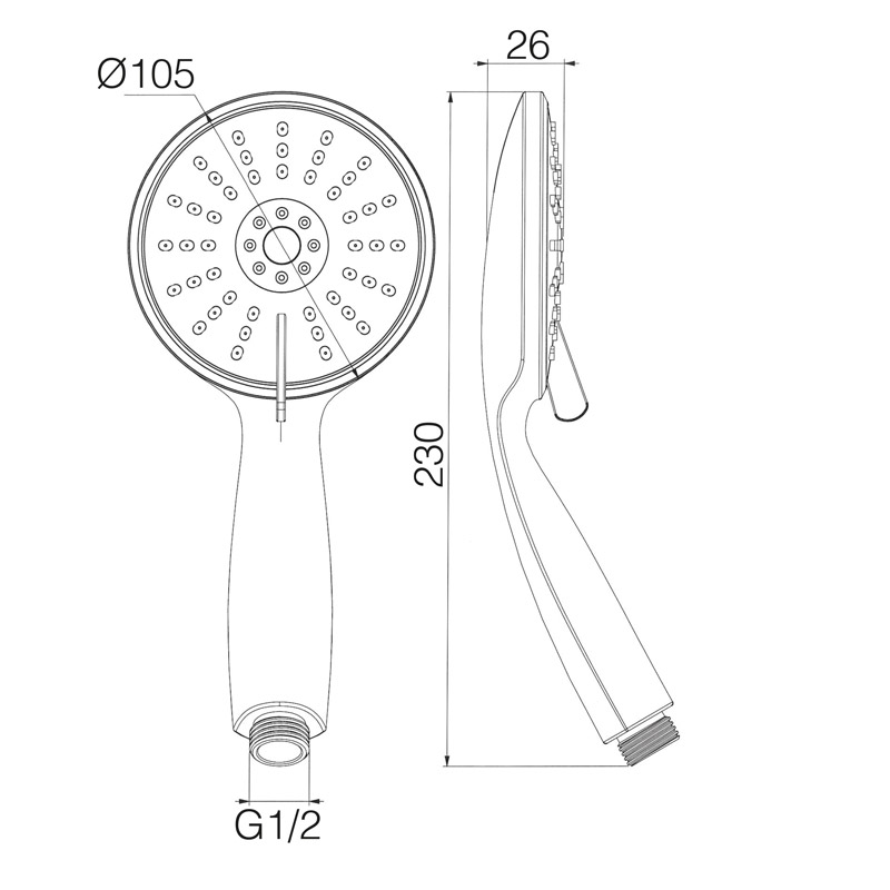 Doccia modello SUNFLOWER in ABS, a tre getti, cromo con sfondo grigio e impugnatura cromo. Confezione: singola in scatola o sacchetto
